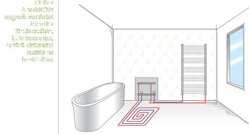 Központi fűtési rendszer, ahol a fűtővíz hőfoka maximum 55°C tervezési hőmérsékleti feltételekkel. A hőleadás a szobákban sugárzó és természetes, konvekciós hő formájában történik a radiátorok segítségével. Nagy energia hatékonyságú és komfortos hőleadást biztosítanak az alacsony energiájú épületekben.