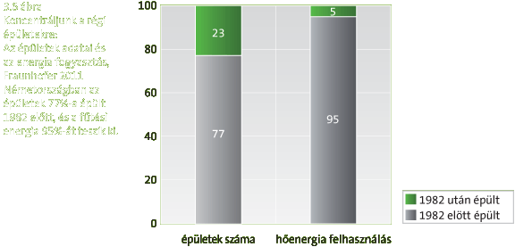 Épületeink, különösen a lakóépületek egy energia fogyasztási spirálban vannak. Európában a legnagyobb, önálló energia felvevő szektor az épületek. Kézenfekvő hát, hogy energia megtakarítási akcióinkat az épületek energia fogyasztásának csökkentésére kell koncentrálni. Ugyanakkor a modern épületek (új vagy megfelelően felújított) nem kimondottan a probléma forrásai, ha energia fogyasztásról van szó. A német épületeket alapul véve az 1982 után épült új épületek aránya mindössze 23% a teljes sokasághoz képest, mégis a fűtési energia fogyasztás mindössze 5%-át adják. Más szavakkal: az öregebb épületek energia hatékonyságát növelve hatékonyabbak lehetünk mi is, és több energiát takaríthatunk meg.