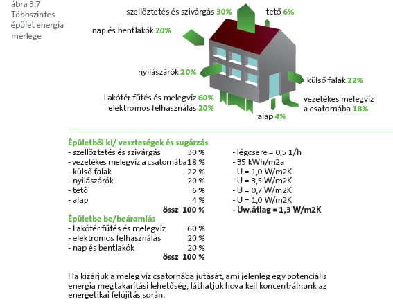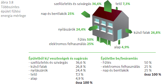 Egy épület teljes energia mérlege a beáramló és a kiáramló energiákból áll össze.