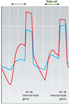 In case of fast-reacting radiator heating systems with small thermal mass, heat gains elevate room temperature not more than 0.5°C