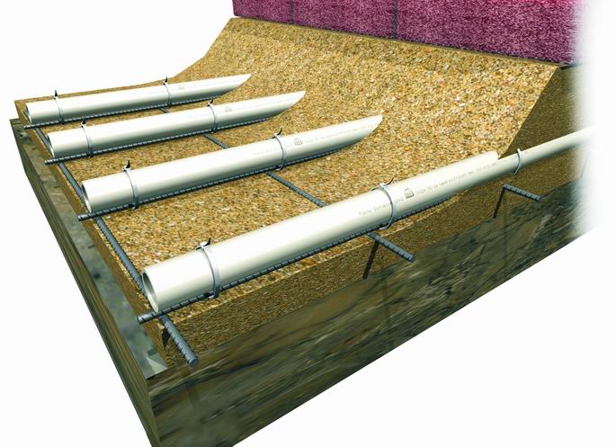 Нагревательные трубы обычно укладываются непосредственно в бетон или в слое песка.