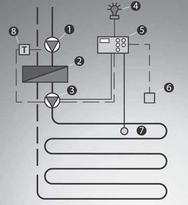 Второй вариант имеет то преимущество, что тепло должно быть доступно только тогда, когда существует опасность обледенения, но и недостаток – потребность в гораздо большей тепловой мощности от системы. Идеальный вариант - это сочетание обеих систем. Индикатор осадков и обледенения PURMO дает возможность включения системы от определенного уровня температуры наружного воздуха. Только когда появляется снег или лёд, активируется дополнительная мощность.