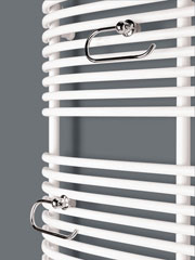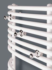 То, что в других радиаторах мешает правильному их креплению в произвольном месте ванной комнаты (неровная поверхность, нетиповая отделка поверхности), в новой очереди радиаторов для ванных комнат «Пурмо» решено остроумно и функционально. К каждому радиатору прилагается комплект подвесных креплений, позволяющих регулировать расстояние между радиатором и стеной до 22 мм. Кроме того можно выровнять радиатор по горизонтали невзирая на неровности стен.