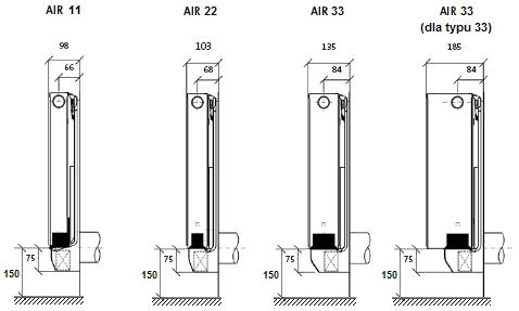 * - system Purmo AIR stosować można z grzejnikami typu Compact od długości 700 mm, z grzejnikami Ventil Compact od długości 800 mm.