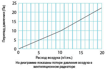 Приведённые выше таблицы касаются примерных, наиболее показательных условий, имеющих место в помещении: расчётные параметры системы 75/65/20oC, вакуумметрическое давление в помещении 10 Па, при котором система должна доставлять в помещение 10 литров воздуха в секунду. Предполагается, что 10% наружного воздуха проникает в помещение посредством инфильтрации, то есть вне системы «PURMO Air». Для проектирования и подбора вентиляционных радиаторов используется программа «PURMO Air». Последню версию программы можно найти на нашем Интернет-сайте: http://www.purmo.com/ или получить на диске CD, содержащем программы в помощь проектированию.
