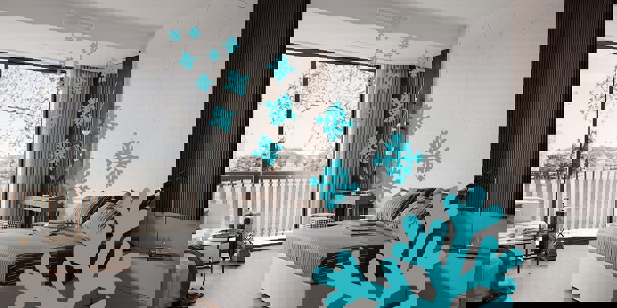 Aquilo-gulvkonvektorerne med blæserer til gengæld ideelle til opvarmning og køling af interiører med gulv-til-loft-vinduer. Selvom de store vinduer maksimerer mængden af naturligt lys og skaber en åben og luftig fornemmelse, øger de også overfladen, der hurtigt kan køle ned om vinteren og varme op om sommeren afhængigt af vinduernes U-værdi. Gulvkonvektorern med blæser, der er installeret i gulvet foran vinduerne, skaber en naturlig barriere, der adskiller den kolde og varme luft og optimerer systemets effektivitet.
