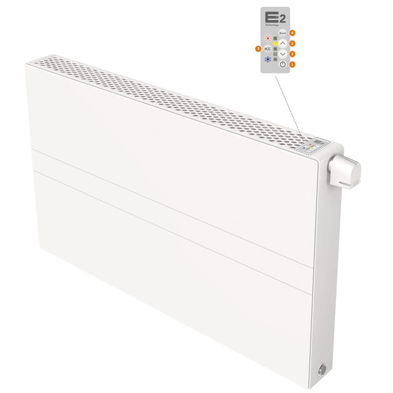 Fan-type radiator with E2 technology intended for low-temperature heating systems.