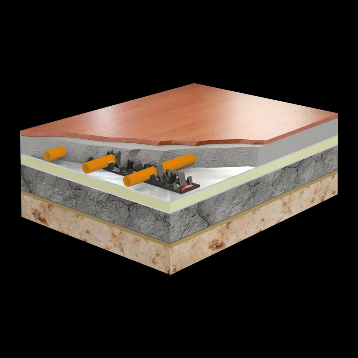 Das railjet Klemmschienensystem wird zum Befestigen der Heizrohre 12, 14, 17 und 20 mm auf bauseitigen Dämmungen eingesetzt. Die railjet Klemmschienen 12,14 und 17mm besitzen einen rückseitigen Klebestreifen zum Aufkleben der Schienen auf die Dämmungsabdeckung gemäß DIN 18560. Die railjet Klemmschiene 20mm wird mit Kabelbinder auf der bauseitigen Betonbewehrung befestigt.