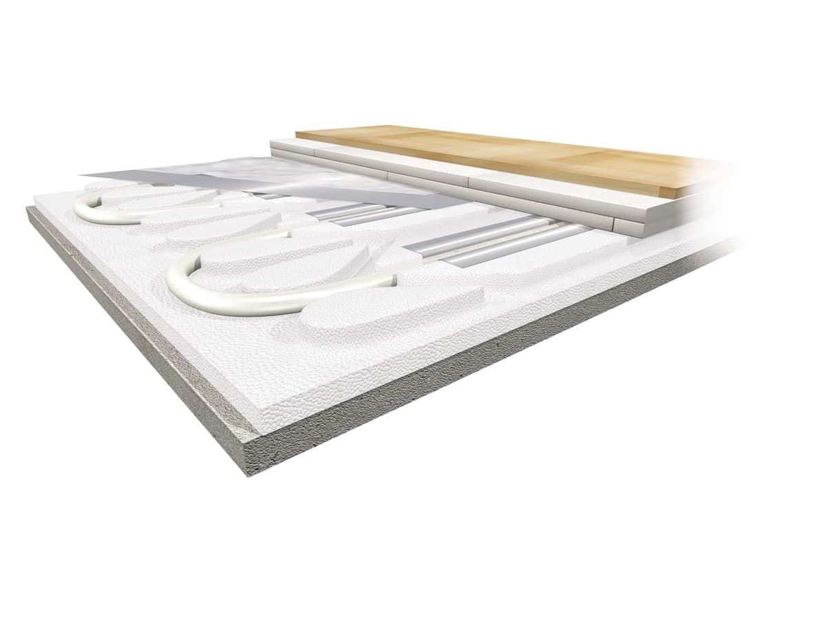 Wie auch das ts14 R System wurde das ts14 S Trockensystem für die Anwendungsfälle entwickelt, in denen herkömmliche Nasssysteme nicht zum Einsatz kommen können. Dies kann z. B. aus Gründen mangelnder Gewichtsbelastung, fehlender Zeit oder einer zu geringen Aufbauhöhe sein. Der Unterschied ist jedoch, dass das ts14 S System mit einer zusätzlichen Lastverteilschicht aus Trockenestrichplatten belegt werden muss. Eine direkte Verlegung der Bodenbeläge auf der ts14 S Systemplatte ist nicht zulässig. Das ts14 S System besteht aus formgeschäumten Polystyrolplatten der Qualität EPS 200. Hier hinein werden die Wärmeleitbleche eingelegt. Die Omega-Form gewährleistet einen sicheren Rohrhalt der SKR Metallverbund- Heizrohre 14x2 mm auch bei engen Verlegeabständen. Nach der Rohrverlegung wird das System mit einer dünnen PE-Folie abgedeckt, um Geräuschen aufgrund von Wärmedehnung vorzubeugen.