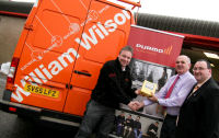 Winner Graeme Strathdee (left), Bob Mair, Branch Manager of William Wilson (middle), and Derek Cuthbert, Purmo Area Sales Manager