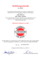 See tõendab, et kvaliteedisertifikaat, Esmakordselt välja antud mis on antud ettevõttele on kehtiv. Sertifitseerimisprotsessi kuulub 2 kontrollhindamist aastas. Ülalmainitud firmas tehti viimane kontrollhindamine. See näitas, et kvaliteedisüsteem vastab SFS-EN ISO 9001:2000 ja üldistele juhendite ABC 200 nõuetele.