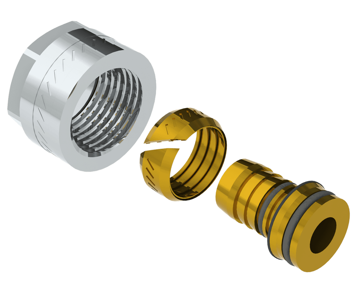 Kaksiosainen liitin lattialämmitysputkelle, sopii suoraan Purmo jakotukkeihin