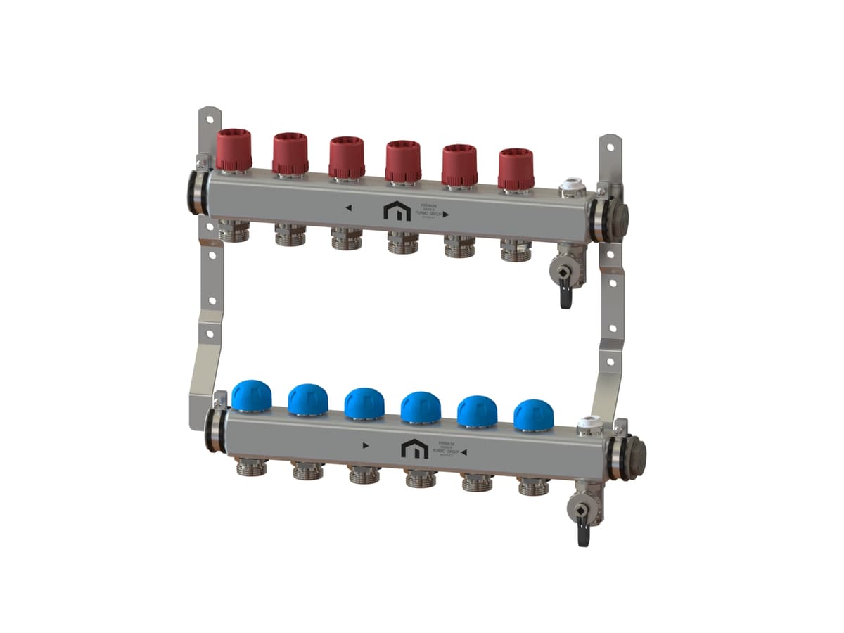 Purmon Basic-jakotukki on kestävä ratkaisu lattialämmitysjärjestelmiin, ja on saatavilla 2-12 lattialämmityspiirin asennuksiin. Kestävästä ruostumattomasta teräksestä valmistettu sisältäen esisäätöventtiilit tarkkaan säätöön sekä manuaaliset ilmanpoistoventtiilit. Tämä jakotukki varmistaa pitkäkestoisen suorituskyvyn ja luotettavuuden, tehden siitä erinomaisen valinnan sekä asuin- että kaupallisiin kohteisiin. Kompakti muotoilu helpottaa asennusta ja huoltoa, minimoiden tilavaatimukset.