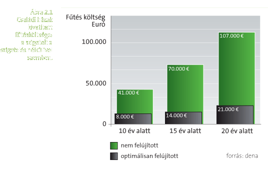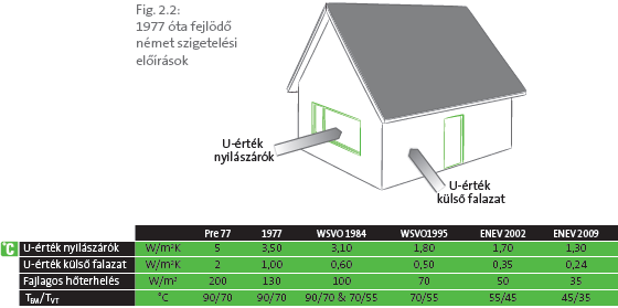 Az ideális szobahőmérséklet eléréséhez a radiátoroknak már csak 50°C-ot kellett biztosítaniuk (átlagos fűtési hőmérséklet), míg a falak 18°C-ig melegedtek, amely sokkal kiegyensúlyozottabb az ablakok 14°C-ához és a levegő 20° C-ához viszonyítva. A helyzet még ennél is tovább javul, ha az EnEV 2009-es szabvány szerint szigetelt épületeket az EnEV 2012 szabvány szerint módosítjuk.