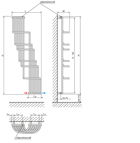 W [mm] | Lz [mm] | Felfüggesztés közötti távolság Lp [mm] | Lx [mm] | Vízbefogadás [dm³] | Tömeg [kg] | Függőleges kollektorok száma |