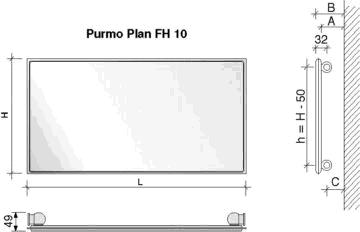 Sík előlappal rendelkező lapradiátor, 4 pont csatlakozású, ½″ belső menettel, oldalsó bekötésű, főként egészségügyi intézményekben és fokozott higiéniai elvárásokat támasztó helyiségekben használható .A radiátorokat speciális 6 vagy 10 cm faltól való eltartást biztosító rugós konzolokkal szállítjuk.