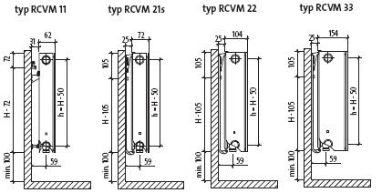 h = 300 - 900 mm - RCVM21s, RCVM22, RCVM33