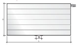 Az új PURMO Ramo FLEX középső, alsó bekötésű radiátorokat enyhe vízszintes bordákkal ellátott, sima felület jellemzi, amely különleges megjelenést kölcsönöz a fűtőtestnek. Lefedésekkel és gyárilag előbeállított szelepekkel szállítjuk. 6 pont csatlakozású radiátorok, két alsó és négy oldalsó csatlakozási csonkkal rendelkeznek, mind G ½” belső menettel, melyek lehetőséget biztosítanak alsó és oldalsó bekötésre is.