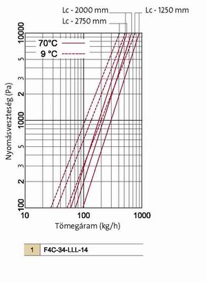 Előremenő hőmerseklet: 55C, Visszaterő hőmerseklet: 45C, Levegő hőmerseklete: 20C, Korrekcios tenyező K1=0,49