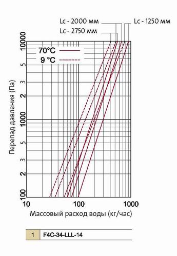 канальный конвектор Aquilo F1T, F1P, F2C, F4C с вентилятором n=1,1 темп. воздуха темп. воды на подаче