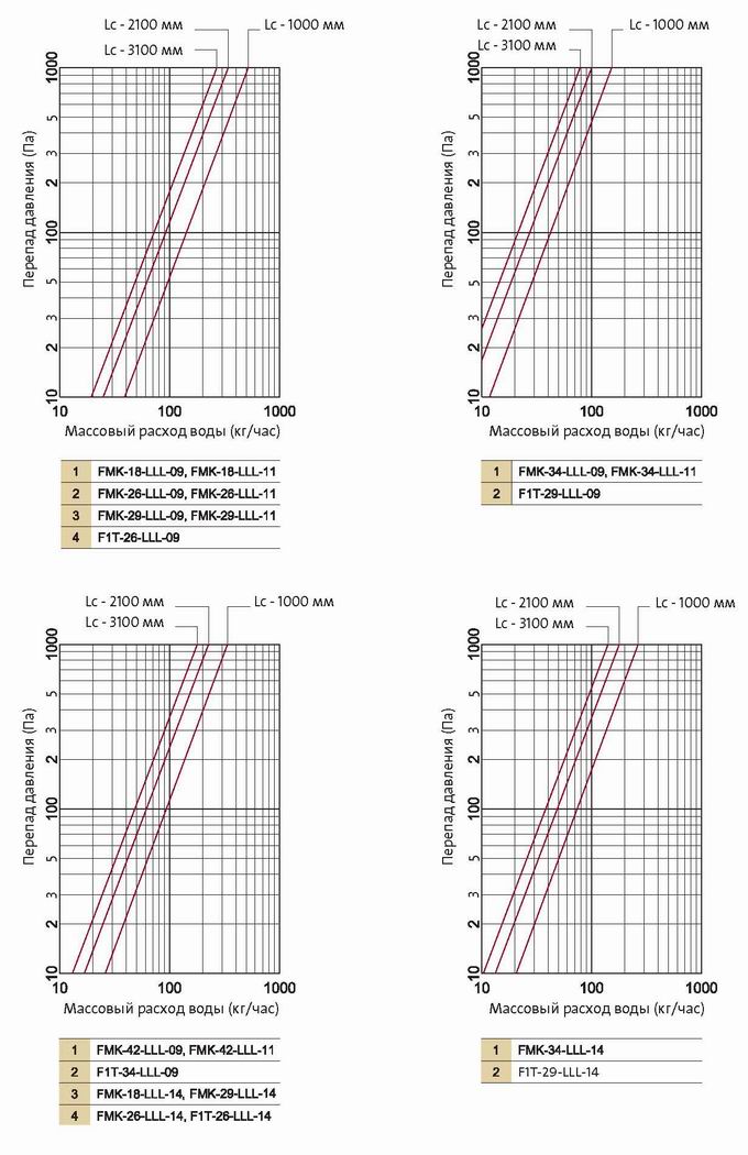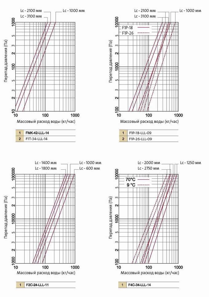 канальный конвектор Aquilo F1T, F1P, F2C, F4C с вентилятором n=1,1 темп. воздуха темп. воды на подаче