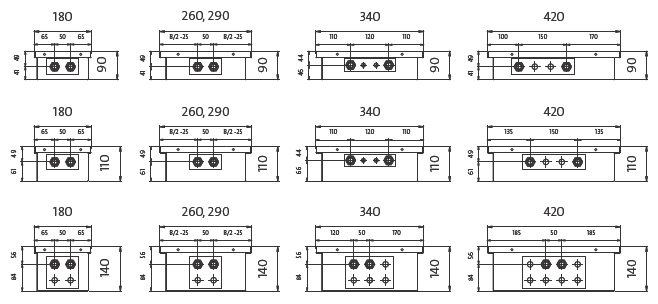высота [мм] 90 110 140 90 110 140 90 110 140 90 110 140 90 110 140