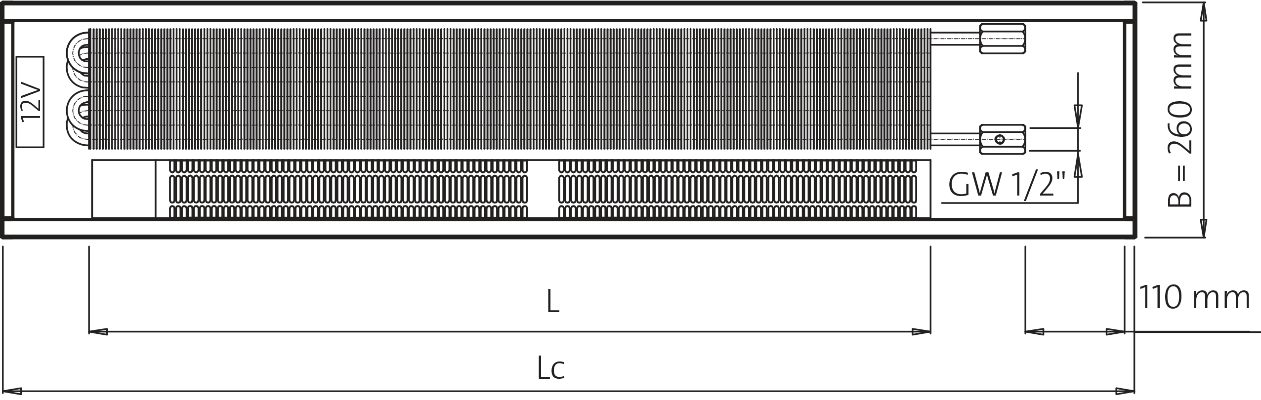 Пример: Конвектор: FMK-26-100-11, тепловая мощность 75/65/20 C: QN = 266 Вт,