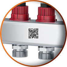 Балки коллекторов изготовлены из высококачественной нержавеющей стали 1.4301 с квадратным профилем 40 мм x 40 мм. По сравнению с эквивалентной круглой балкой этот профиль характеризуется большей емкостью и меньшим сопротивлением потоку. Каждый распределитель индивидуально помечен лазерной гравировкой, где кроме серийного номера и логотипа Purmo есть также QR-код с гиперссылкой на обучающий видеоролик.