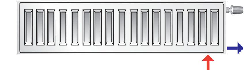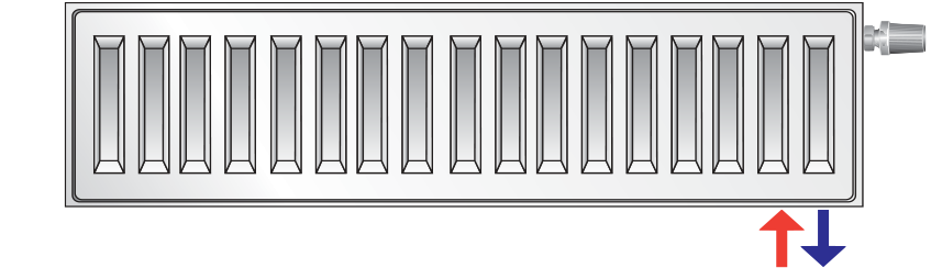 Применяется для радиаторов, запитываемых снизу. Ось питательной трубы всегда расположена в 80 мм от боковой грани радиатора, а ось обратной трубы – в 30 мм.Обратное подсоединение приводит к снижению тепловой мощности радиатора более чем на 30%. ![]() промежуточное подсоединениеРадиаторы, запитываемые снизу, можно подсоединять одновременно к боковым и нижним патрубкам. Возможны промежуточные решения: боковое и диагональное, представленные на рисунках. |