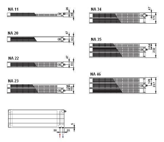 Šie radiatoriai specialiai suprojektuoti patalpoms, kuriose įrengti dideli langai (vitrinos), taip pat tokioms, kuriose palangės po dideliais langais įtaisytos palyginti žemai. Tokiose vietose tradicinio aukščio plokštinis radiatorius tiesiog netelpa. Būtent tokiose situacijose radiatoriai Narbonne ir Narbonne VT yra idealus sprendimas, nes jų aukštis yra itin nedidelis. Palyginkime: žemiausias standartinis plokštinis radiatorius Purmo yra 20 cm aukščio, tuo tarpu mažiausiasis radiatorių Narbonne aukštis tėra... 7 cm! Rinktis galima iš įvairių variantų, nes radiatoriai Narbonne taip pat gaminami 14, 21 ir 28 cm aukščio. Tokia aukščių įvairovė leidžia įkomponuoti radiatorių bet kokioje patalpoje, juo labiau, kad radiatoriaus ilgis gali būti nuo 50 cm iki 400 cm.
