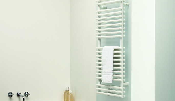 Grzejnik łazienkowy Apia to solidna konstrukcja o wysokiej mocy grzewczej. Dzięki podwójnym kolektorom poziomym, model Apia oferuje wysoką wydajność cieplną przy ograniczonym miejscu na scianie. Podłączenie środkowe dodaje symetrii oraz umożliwia wykorzystanie najnowszych rozwiązań z dziedziny armatury grzejnikowej, w tym zintegrowanego zaworu do sterowaniem pracą grzejnika i ogrzewania podłogowego (TemCo VT).