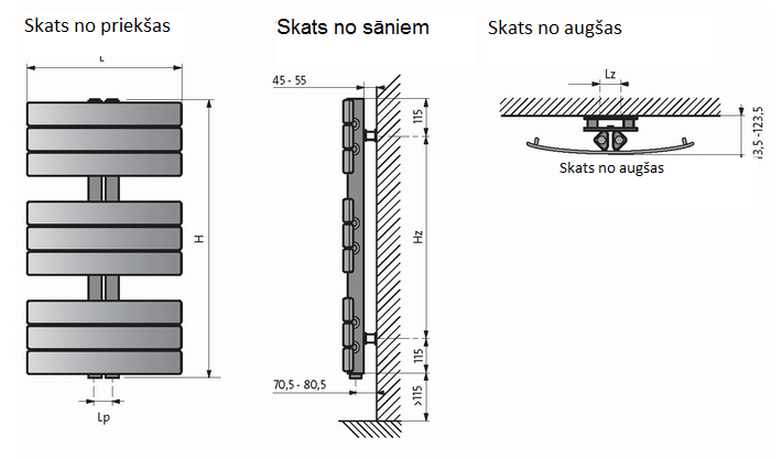 Siltuma jaudas un dvieļu žāvētāja Apolima izmēri: