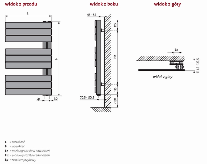 Zawieszenia | Rozstaw przyłączy Lp [mm] | Pojemność wodna [dm³] |
