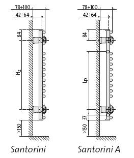 *UWAGA: Grzejniki SANTORINI wysokości 714 i 1134 mm dostępne są na zamówienie w wersji z podłączeniem bocznym- Santorini A (SAA) o rozstawie przyłączy 500 mm w wersji "prawej" i "lewej".