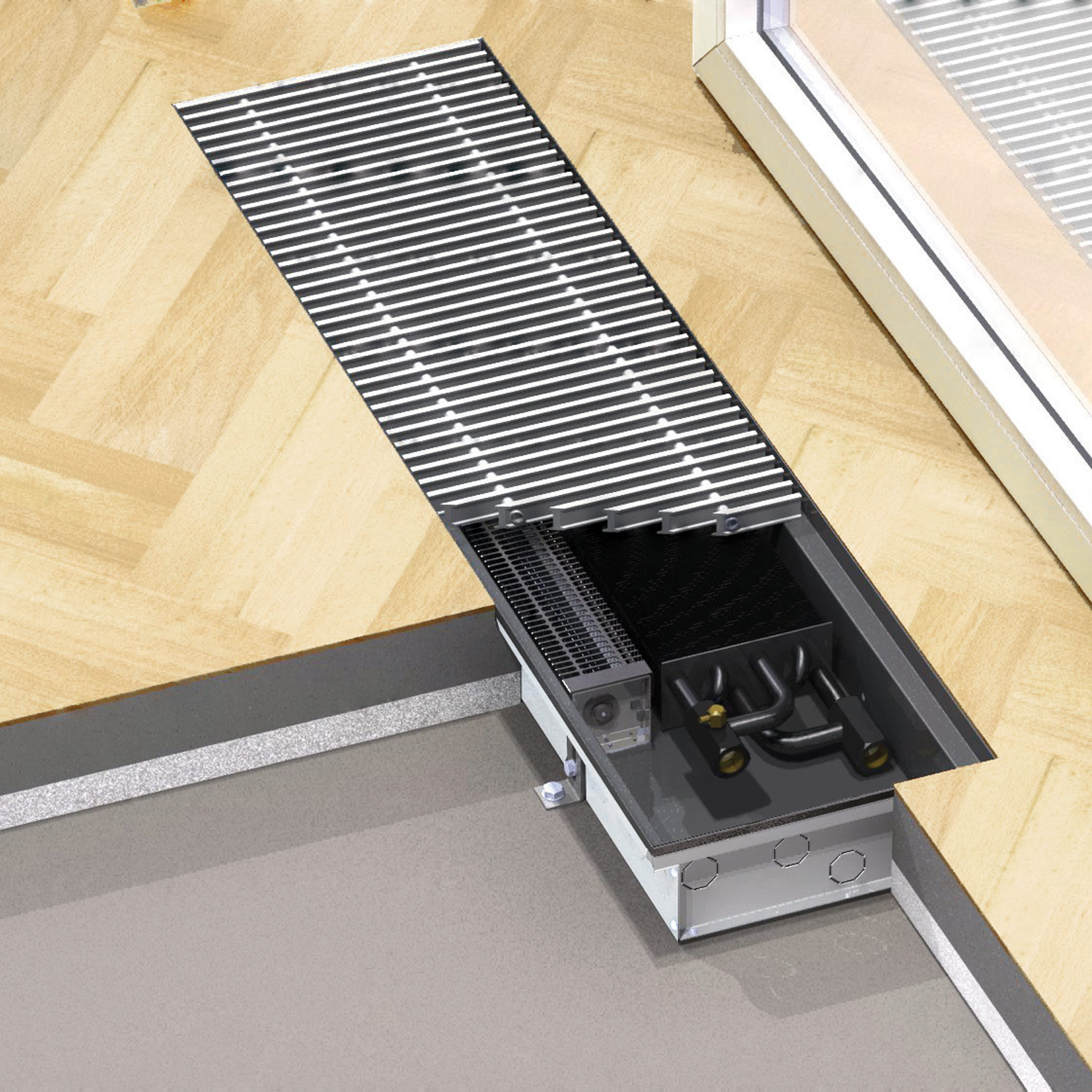 Grzejniki kanałowe Aquilo F1P przeznaczone są do montażu w podłogach ogrzewanych pomieszczeń.