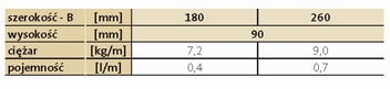 | Długość (mm) | Szerokość (mm) | 180 | 260 | |||