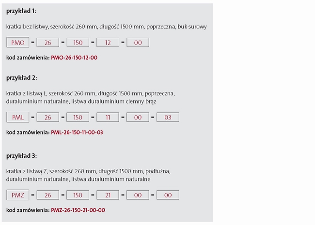 | duraluminium, poprzeczna Zwijana kratka poprzeczna z duraluminiowymi (eloksowanymi) poprzeczkami Dostępne kolory: naturalny, złoty, jasny brąz, ciemny brąz lub czarny Kratka jest standardowo dostarczana w wersji PMO czyli bez listwy wykończeniowej Wolny przepływ: 71% |