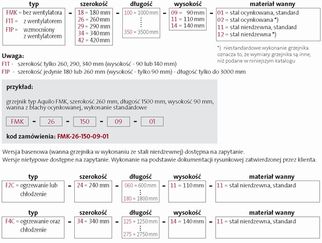 Sposób regulacji mocy cieplnej konwektora podłogowego - lista wyposażenia opcjonalnego: