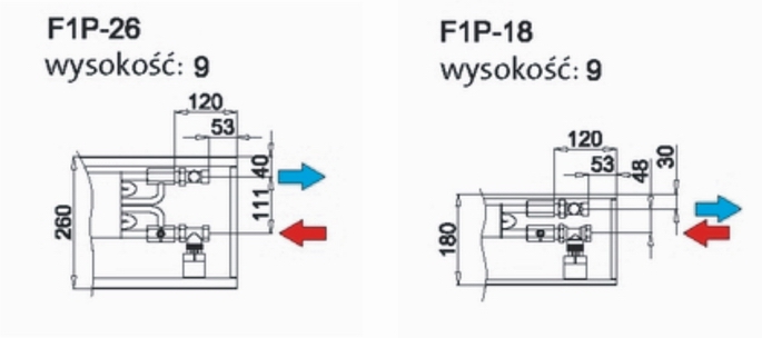 Podłączenie wymiennika do instalacji grzewczej poprzez dwa króćce z gwintem wewnętrznym G ½". Obowiązkowe wyposażenie elektryczne , które należy zamówić dodatkowo, stanowi odpowiednio dobrany transformator (natynkowy lub podtynkowy) oraz regulator naścienny sterujący obrotami wentylatora.