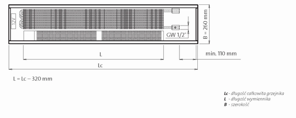 Od góry grzejnik zabezpieczony jest poprzeczną kratką maskującą wykonaną z materiału z oferty producenta, którą należy zamawiać osobno.