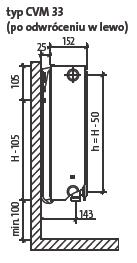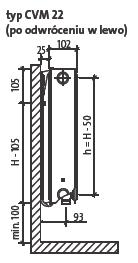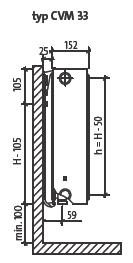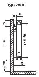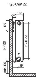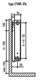 Statnis paneļu radiatoru tipiem CVM21s, CVM22, CVM23 ar augstumu 300 - 900 mm: