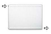 | Radiatoru tipi: | C11, C21, C22 ja C33. Bez konvektoru plāksnēm, augšējās restes un sānu plāksnēm tipi H10, H20 ja H30 |