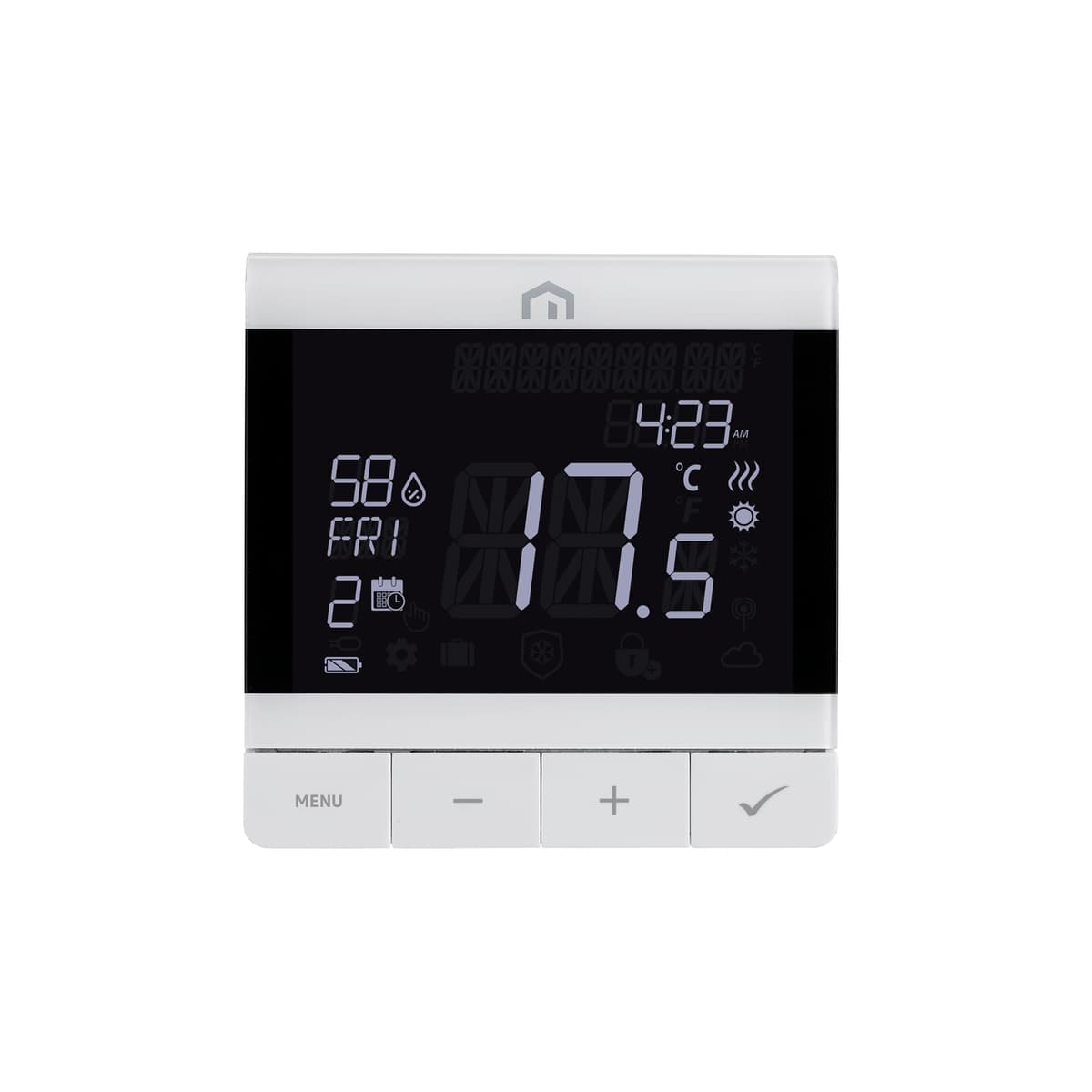 Unisenza Plus Termostat RF este un termostat de cameră alimentat cu baterii, echipat cu tehnologie Zigbee 3.0 și este potrivit pentru un sistem de încălzire/răcire radiant hidronic. Acest tip de termostat este utilizat pentru controlul wireless al modulului de comandă care funcționează cu cazanul, pompa și actuatoarele pentru diferite zone