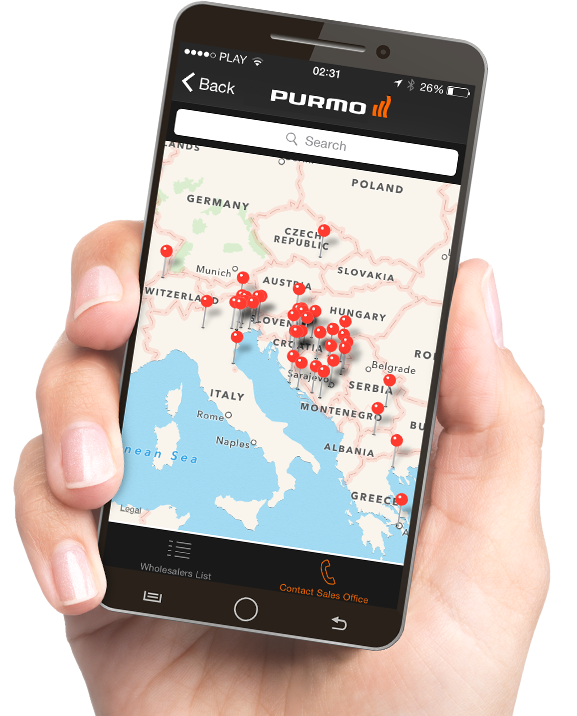 The app can be used to locate any of the wholesaler cooperating with Purmo. Fins all contact details including the navigation data that would drive you directly to the location of your preferred dealer.