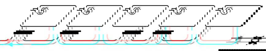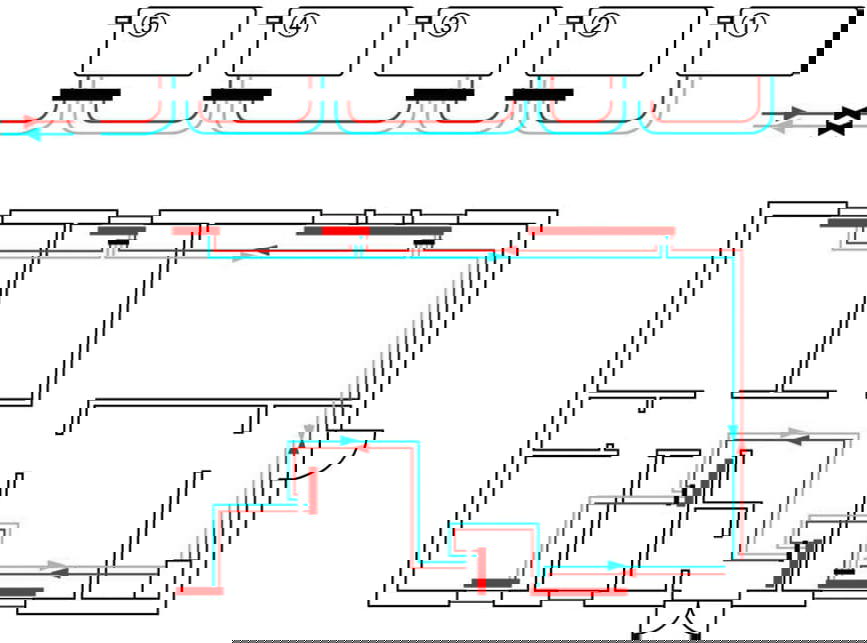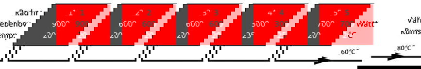 Radiator med stor effekt och litet utrymme bör om möjligt placeras i början av slingan.