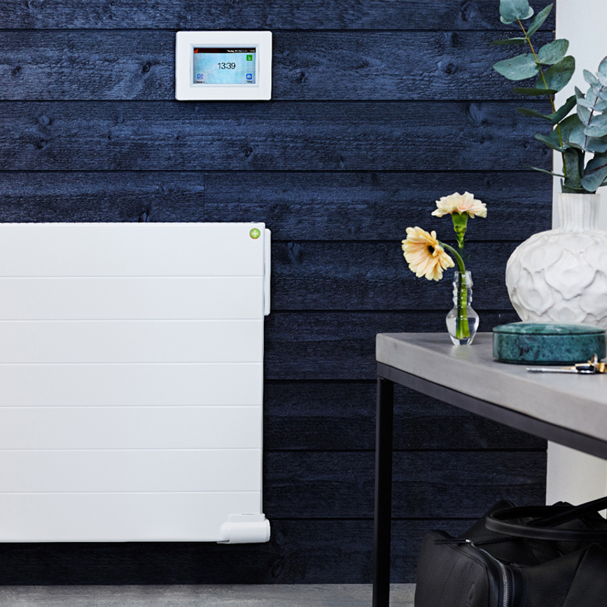 Det är viktigt att en radiatortermostat kan mäta den verkliga temperaturen i rummet. Därför är det till sin fördel om rumstermostaten är placerad på en lämplig plats, som t.ex. på en innervägg en bit från golvet. Att hela tiden justera dina rumstermostater manuellt kommer inte att spara någon större mängd energi. Ställ istället in dina radiatortermostater efter det inbyggda veckoschemat och låt dem reglera rumstemperaturen automatiskt. Veckoschemat kan anpassas, så att du t.ex. har lägre temperatur i huset under natten och då du är borta hemifrån. Om du reser bort för en längre tid kan du sänka temperaturen under den aktuella perioden. Med hjälp av styrsystemet Touch E3 (på bilden ovan) styr du enkelt Yali radiatorerna Digital, Parada, Ramo även på distans. Med hjälp av appen CleverTouch kan du höja och sänka inomhustemperaturen direkt från sin smartphone.