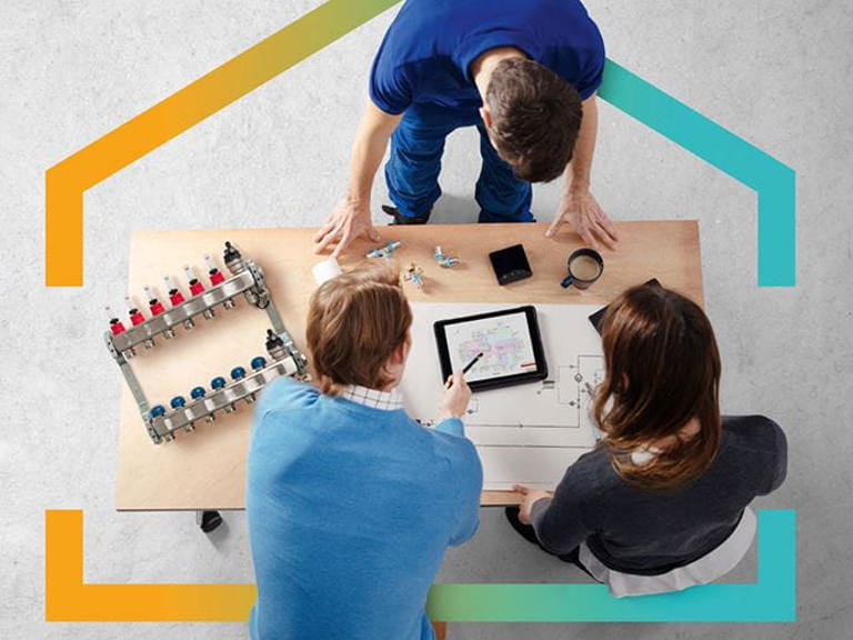 Vår vattenburna golvvärme är en trygg och effektiv lösning, oavsett om det gäller nybyggnation eller renovering. Kunniga projektörer skräddarsyr golvvärmesystemet med hänsyn till projektets förutsättningar för att säkerställa en installation med god komfort och ekonomisk drift. De låga driftstemperaturerna i golvvärmesystemet passar särskilt bra tillsammans med energisnåla värmekällor som värmepumpar och erbjuder en lång livslängd med minimalt underhåll.