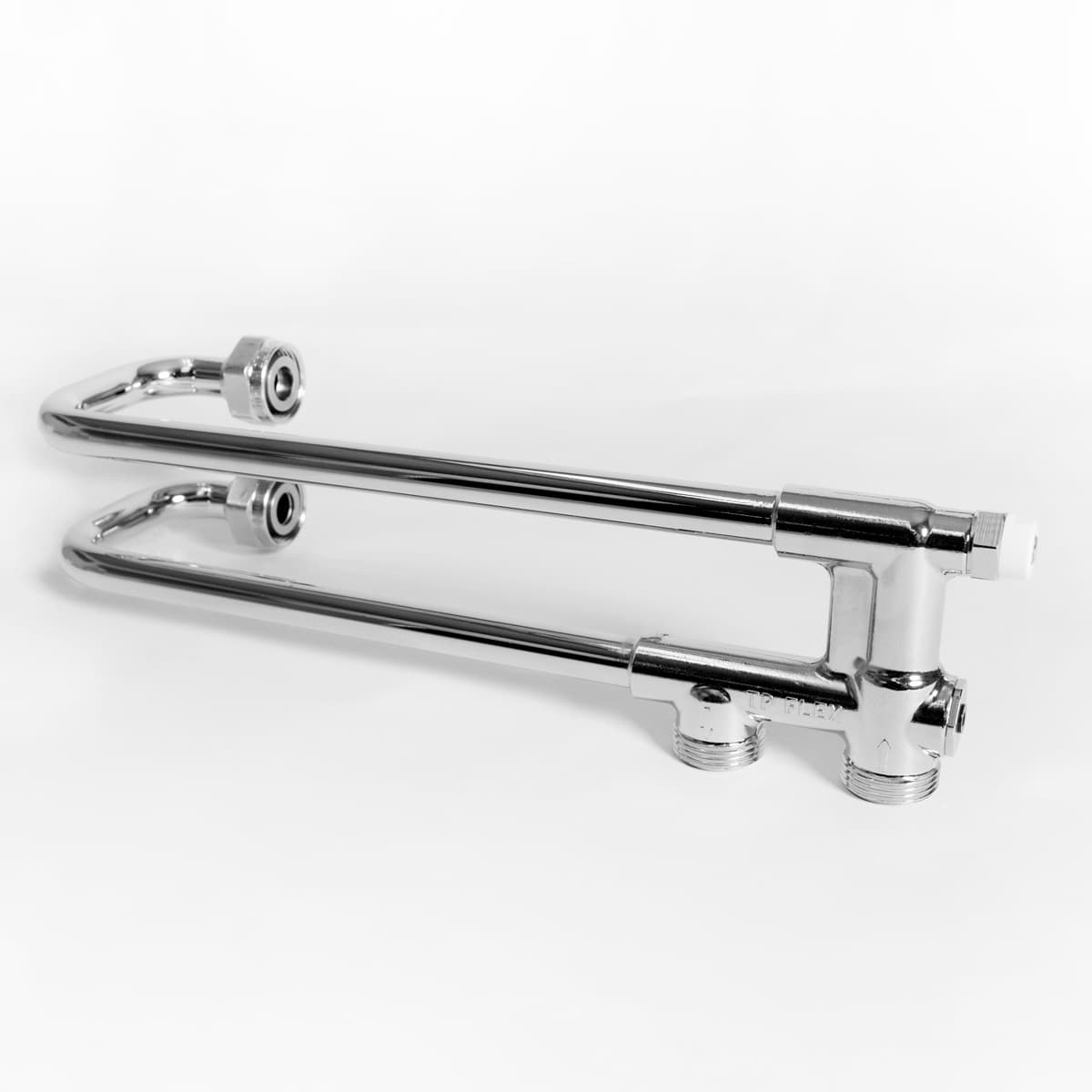 Fördelaren är omställbar mellan ett- och tvårörssystem och försedd med 2 st M22 x 1,5 utvändig gänga för tillopp och retur.
