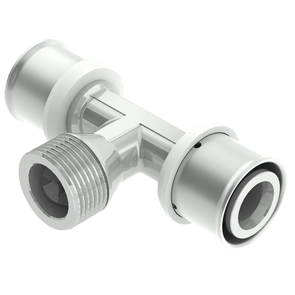 Presskoppling för sammanfogning av Purmo MultiSystem PE-Xc och PE-RT/Al/PE-RT-rör samt golvvärmerör PE-RT. Samtliga presskopplingar är i avzinkningshärdad mässing med hylsa av rostfritt stål. Purmos presskopplingar är anpassade för pressverktyg med profil TH.