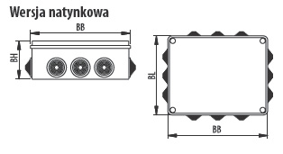 | тип | длина L [мм] | ширина B [мм] | высота H [мм] | вес[кг] | тип | длина L [мм] | ширина B [мм] | высота H [мм] | вес[кг] | |